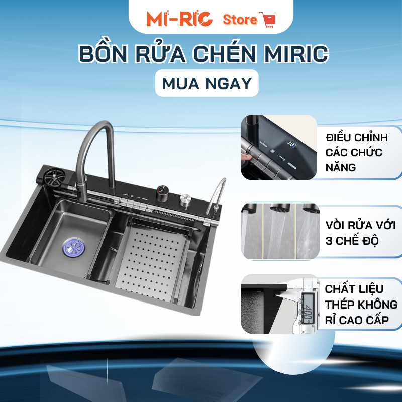 Bồn rửa bát inox 304 MIRIC 1 ngăn chống han gỉ, tích hợp màn hình LED hiện đại