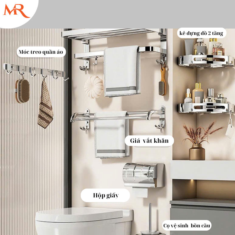 Bộ phụ kiện nhà tắm 6 món inox 304 cao cấp Miric – Giải pháp hoàn thiện không gian phòng tắm hiện đại