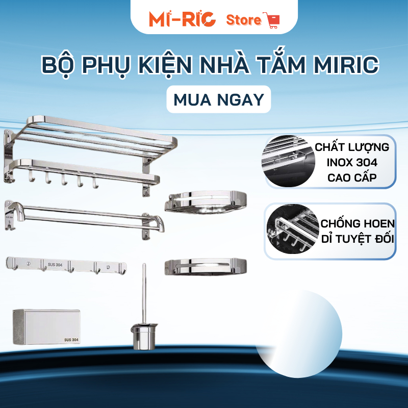 Bộ phụ kiện nhà tắm Miric gồm 6 món cơ bản và cần thiết, giúp bạn hoàn thiện đầy đủ các nhu cầu sử dụng trong phòng tắm mà không cần mua lẻ từng sản phẩm. Toàn bộ sản phẩm được làm từ inox 304 cao cấp, nổi bật với khả năng chống gỉ sét, chống ăn mòn, chịu nước tốt, đặc biệt phù hợp với môi trường ẩm ướt như phòng tắm.